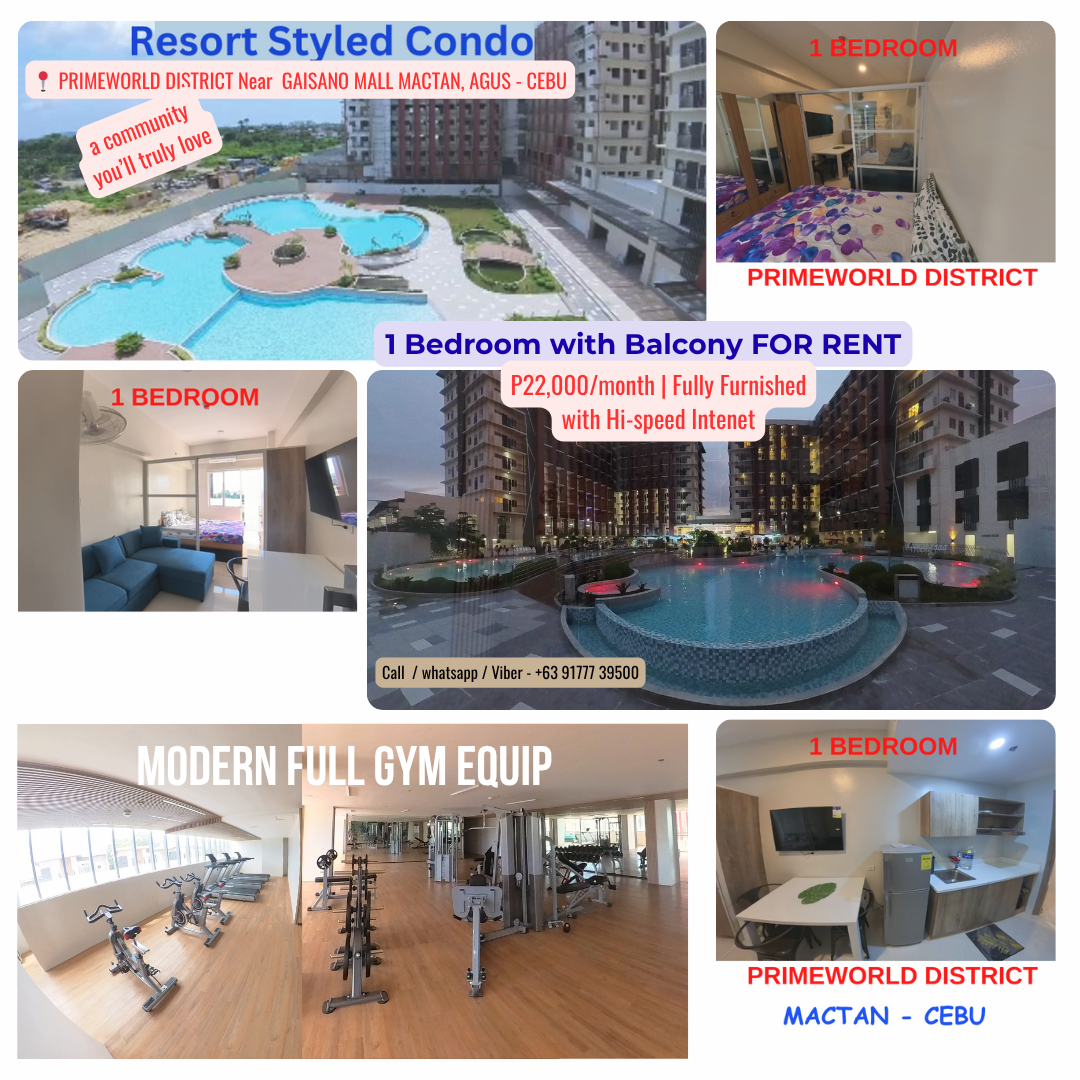 1 Bedroom with Balcony For Rent – Primeworld District, Mactan – Fully Furnished (₱22,000/month)